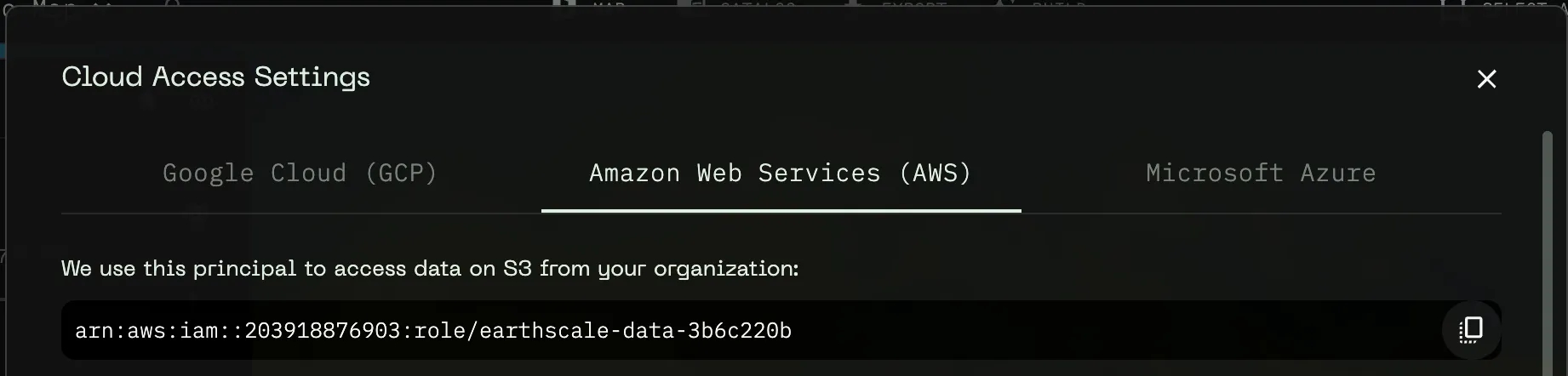 If you'd prefer to grant Earthscale access to a brand new bucket, you can follow the AWS guide to create one. Then, follow the instructions above to grant Earthscale access to that bucket.